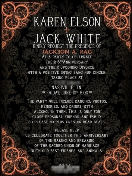 - Jack White and Karen Elson’s Divorce Party: Healthy Breakup Or Just Weird? (blisstree.com)