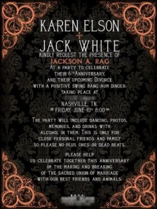 The White Stripes’ front man Jack White and his wife of 6 years model Karen Elson, threw a party this weekend, to celebrate their wedding anniversary and divorce.